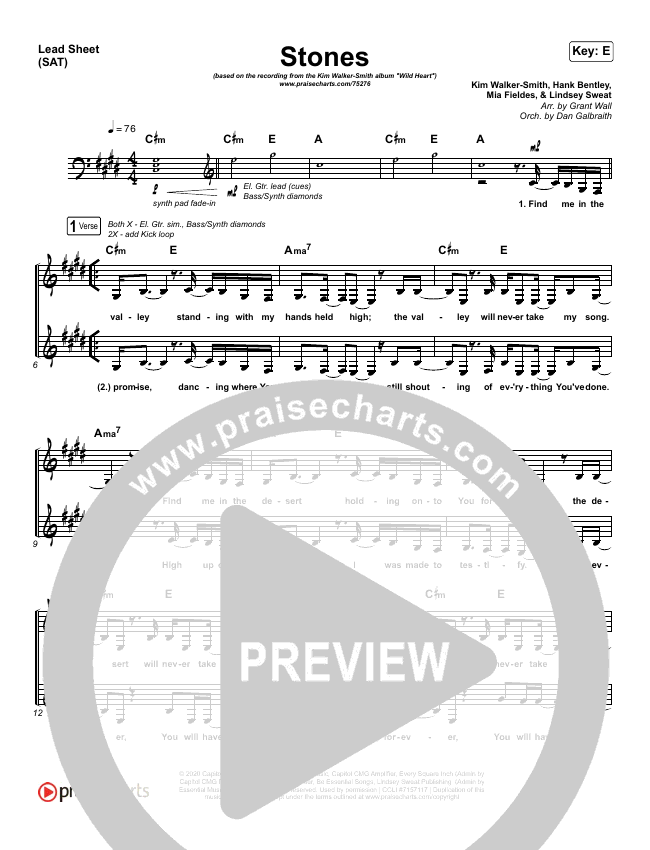 Stones Sheet Music (Kim Walker-Smith) - PraiseCharts