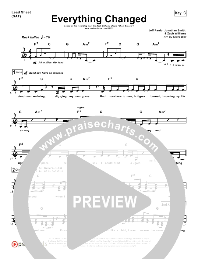 Everything Changed Sheet Music PDF (Zach Williams) - PraiseCharts